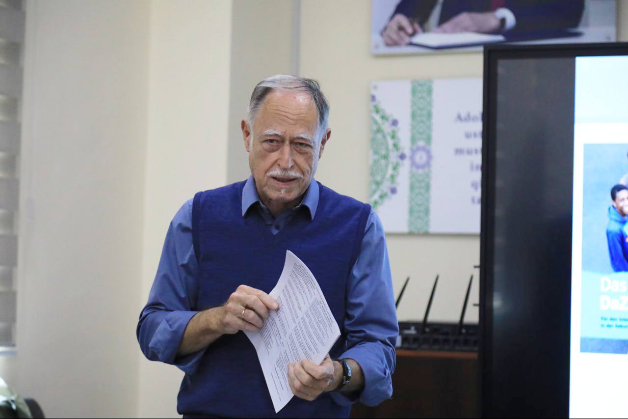 Am Nachmittag besprachen Zamira und ich den Plan für die Woche und vereinbarten speziell für die vier Masterstudentinnen und den einen Masterstudenten eine Serie von Konversations-Stunden und die erste begann gleich um 16 Uhr: Alle geben schon selbst Deutschunterricht und ihr Deutsch kann durchaus noch flüssiger werden.